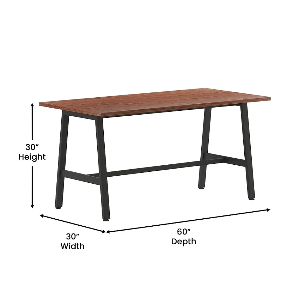Foster big thinking during brainstorming sessions or encourage open communication and interaction between stakeholders during important meetings with this 60×30 commercial grade conference table. Available in timeless finishes that will blend well in any environment, this boardroom table will make a statement while providing ample space for multiple guests. The liquid and scratch-resistant 1 inch thick table top with a durable laminate finish on both sides and PVC edging increases durability for long-lasting use. The heavy-duty, powder coated, A-frame steel base comes with included hardware and easily attaches to the underside of the table into the predrilled holes. This conference room table holds up to 300 lbs. static weight, and features adjustable floor glides ensuring a level surface. Assembly takes less than 10 minutes and cleanup is easily achieved with a damp cloth.