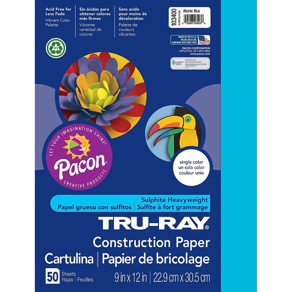 Heavyweight 100% vat-dyed sulphite with longer, stronger fibers. Tru-Ray® Construction Paper is tough enough to take scoring, folding and curling without cracking and tearing. Its superior fade-resistance keeps projects brighter and fresher longer. Each pack includes 50 sheets. Each sheet measures 9″ x 12″. Sold as 5 packs for a total of 250 sheets.