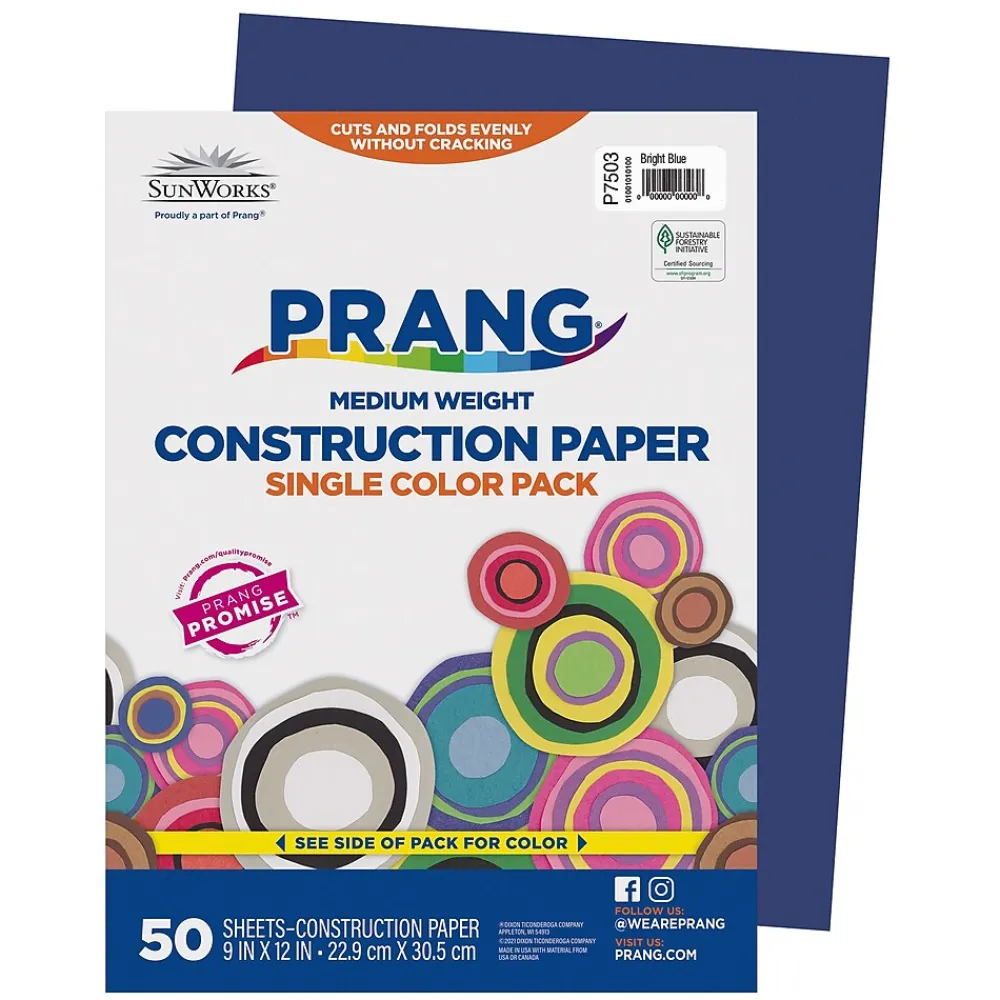 - Bright and consistent color makes Bright Blue Prang® construction paper perfect for school projects, arts & crafts, or just doodling