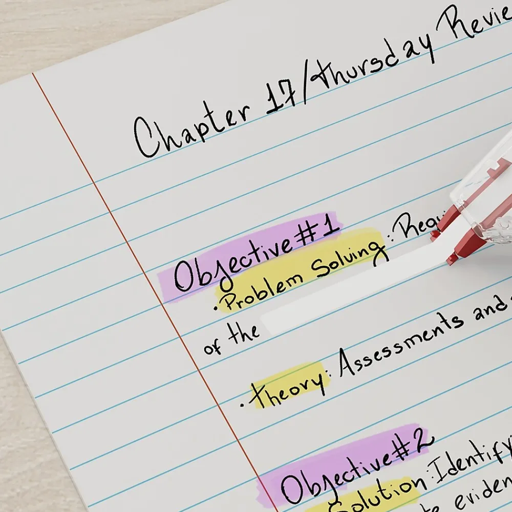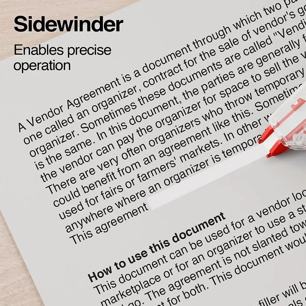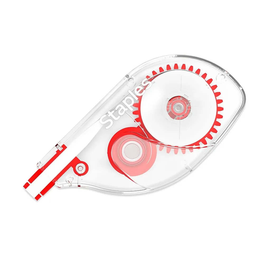 Round out your workplace desk essentials with these sidewinder correction tapes. Featuring a high-quality fast-dry formula, the white tapes let you undo printed and written mistakes quickly. A convenient sidewinding design facilitates precise correction, while the compact dispenser supports easy holding and storage. These Staples sidewinder correction tapes roll out smoothly and cleanly, leaving no shadows and smudges on your documents and notebooks.