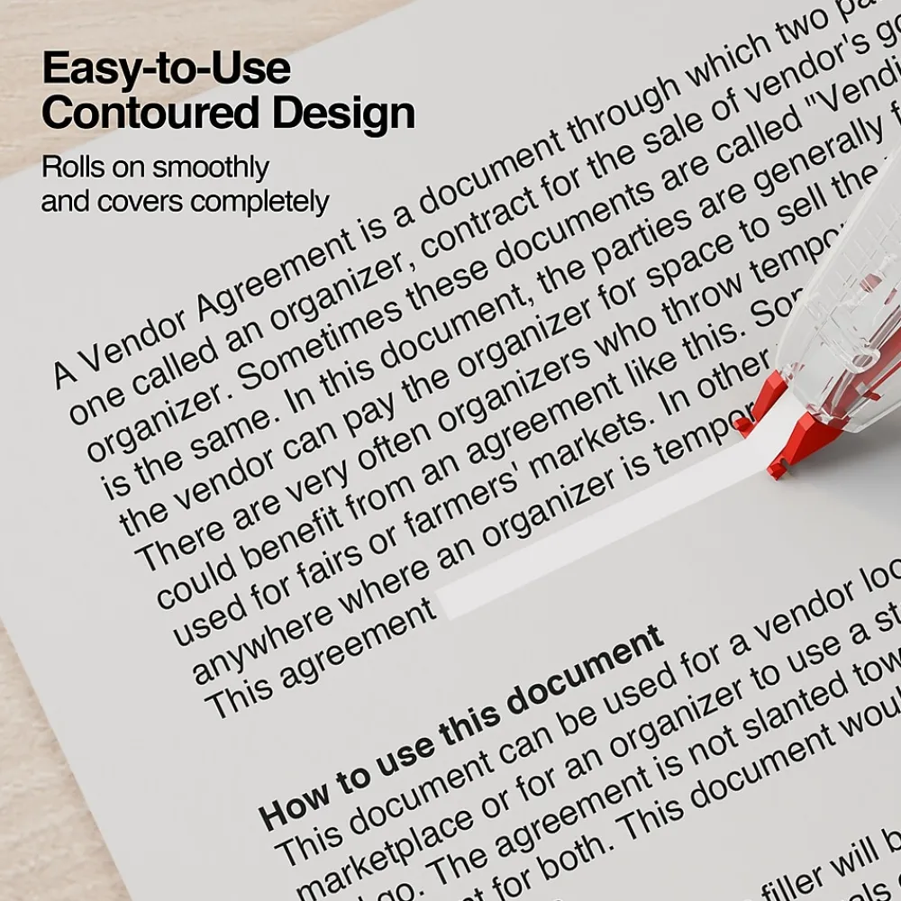 - Correction tape in ergonomic contoured design fits comfortably in the hand