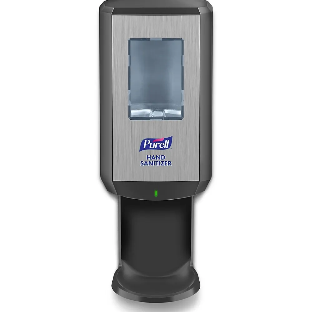 - Case Includes: 1 – PURELL CS6 Touch-Free Hand Sanitizer Dispenser, Graphite; 4 “C” batteries; and adhesive tape