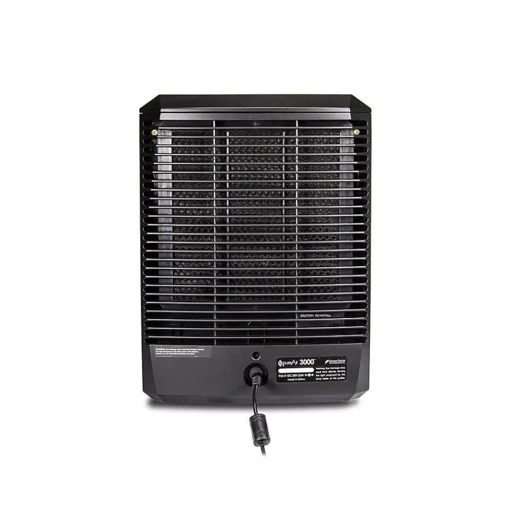 The GreenTech Environmental pureAir is the solution to indoor air quality in homes or offices up to 3000 sq. ft.. Using four advanced technologies, the pureAir air purifier helps eliminate odors, smoke, pollen, dust, bacteria, mold, mildew, pet dander, viruses, and much more. It destroys pollution from the air, embedded in walls, ceilings, floors, carpets, furniture, clothing, on countertops, and other surfaces. These technologies help sanitize everything in the house and reduce or eliminate all odors, including cigarette smoke, cooking odors, and more. Small, sleek design makes it an elegant addition to any space, and its convenient remote control allows for simple purification level adjustment.