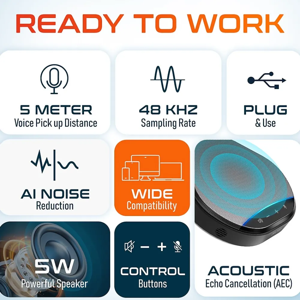 - Portable wired USB conference room speakerphone delivers remarkable sound clarity to all your meetings
