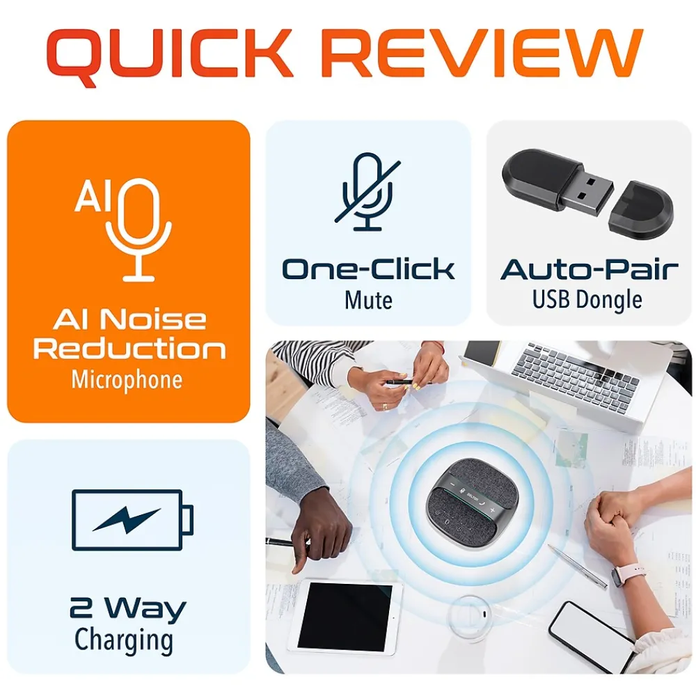 - Conference speakerphone works seamlessly with various devices and operating systems including Windows, MacOS, Linux, ChromeOS, and mobile platforms