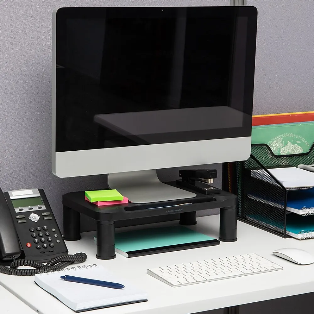 - Maximize small space: Space-saving monitor riser lifts screen off the surface. Each stand can hold up to 50lb (22.5kg)