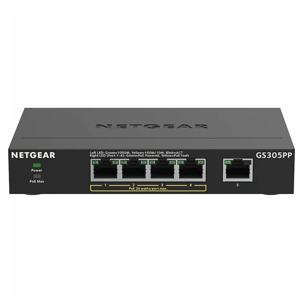 NETGEAR 300 Series Gigabit Ethernet Unmanaged switches with PoE provide easy, reliable, and affordable network connectivity for home and small offices. With these unmanaged plug-and-play switches, you can expand your network connections to multiple devices instantly. The unmanaged switches provides power and data from a single Ethernet (CAT-5e) cable to devices such as IP cameras, VoIP/ Internet-based phones, wireless access points, etc. The majority of these models also support PoE power auto-balance and allocation feature.