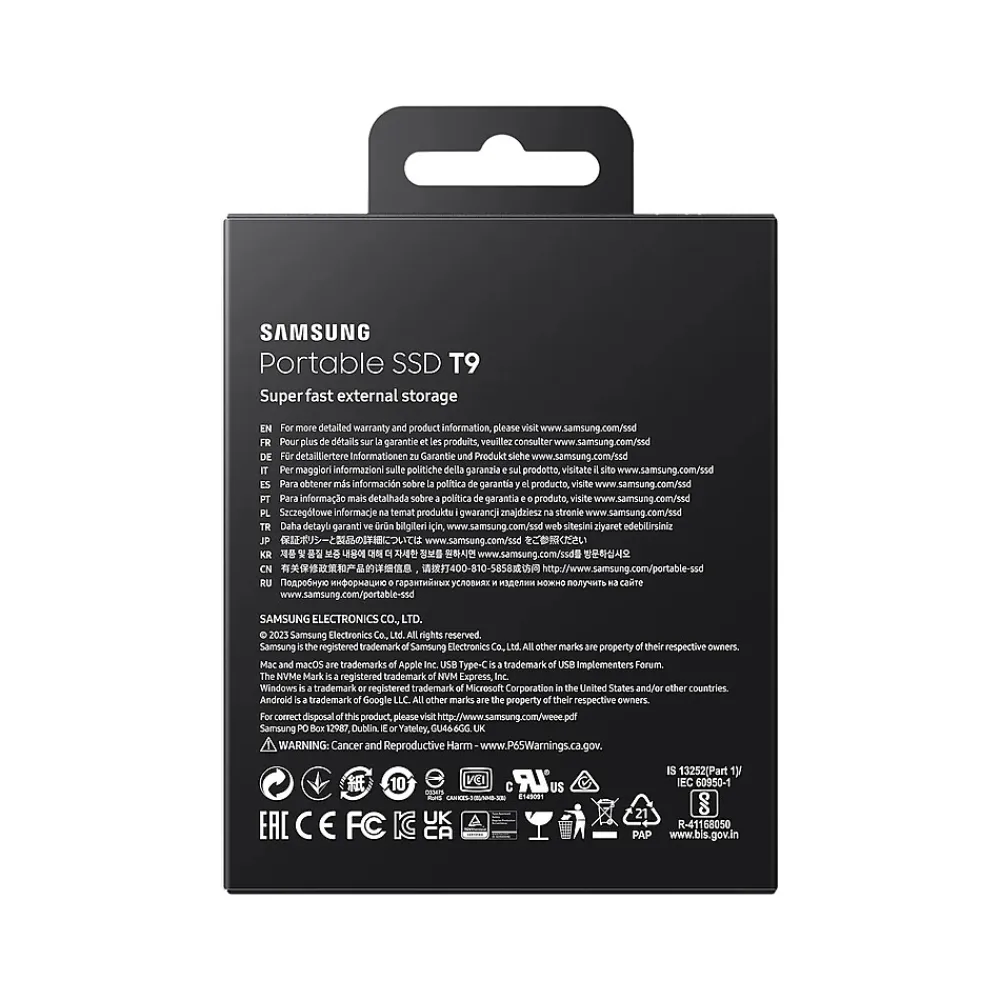 Enhance workflow efficiency with Samsung T9 1TB USB 3.2 portable solid state drive, boasting sequential read/write speeds of up to 2,000 MB/s through its USB 3.2 Gen 2×2 interface. T9 is compatible with Windows, macOS, Android phones and tablets, gaming consoles and 12K camera. Rest assured. T9 offers up to 3 meters drop resistance and is backed by a 5-year limited warranty.