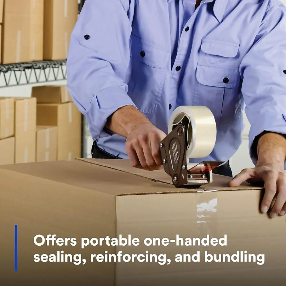 Scotch Box Sealing Tape Dispenser H180 is a portable, hand-held tape dispenser. This box sealing tape dispenser comes with a pistol-grip design for easy application. Tack, roll, buff and tear in one fluid motion. The lightweight and rugged construction of this box tape dispenser creates a durable, yet portable, tool for sealing, combining, reinforcing and bundling.
