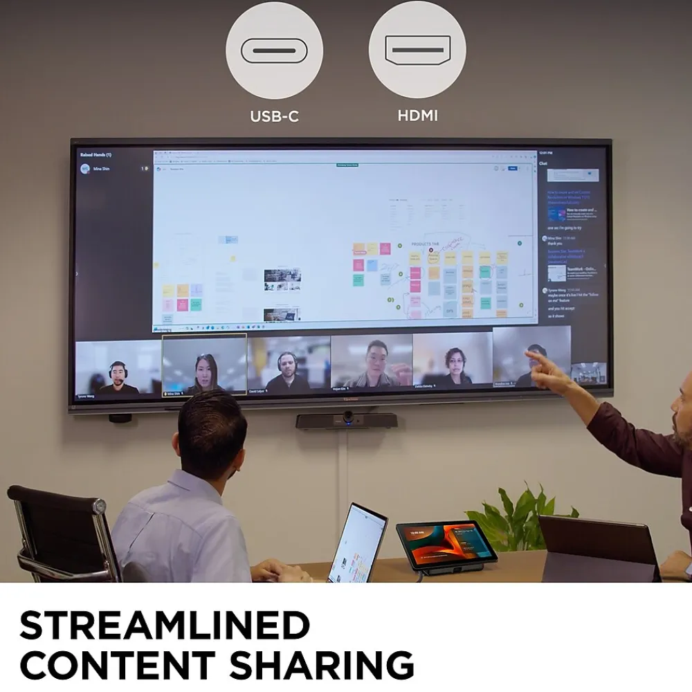 - EASY CONTENT SHARING: A convenient HDMI ingest feature allows for plug-and-play content sharing, making BYOD presentations effortless and efficient.