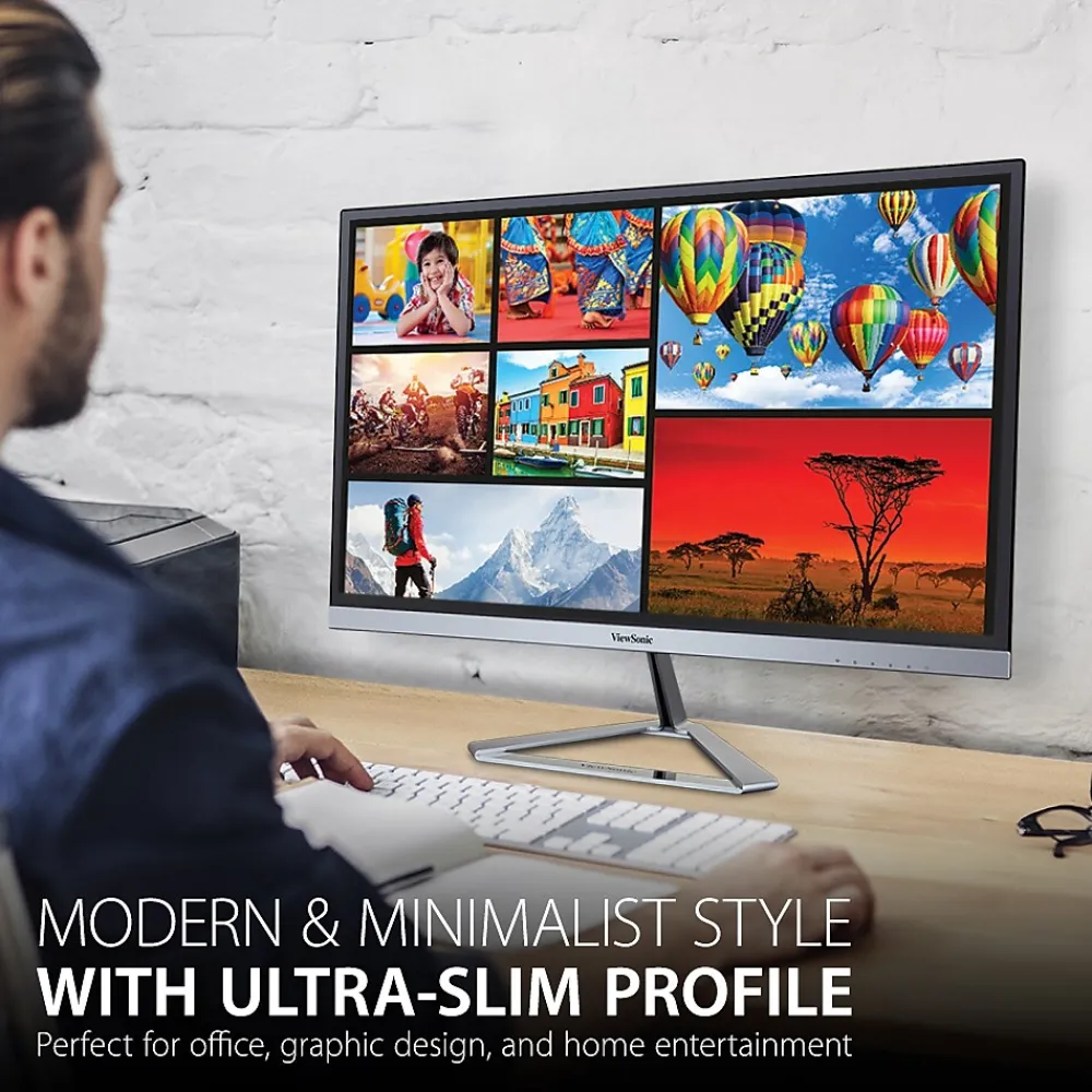 The ViewSonic VX2276-smhd is a sleek 22-Inch (21.5-Inch viewable) Full HD monitor with a modern and minimalist style perfect for home use. With SuperClear IPS Panel technology, this monitor offers best-in-class screen performance with ultra-wide viewing angles. A premium ID includes an ultra-slim profile, unique desktop stand, and a sleek edge-to-edge frameless design, that when combined with vivid 1920×1080 resolution and dual speakers, deliver an immersive viewing experience for home entertainment and multimedia applications. HDMI, DisplayPort, and VGA inputs offer flexible connectivity options for both computing and gaming environments, while ViewSonic’s exclusive ViewMode feature provides intuitive presets for optimized screen performance in different applications. In addition, Flicker-Free technology and a Blue Light Filter help to minimize eye strain from extended viewing periods. With ViewSonic’s industry-leading 3-year limited warranty, this monitor is a solid long-term investment that combines style and high performance for the home.
