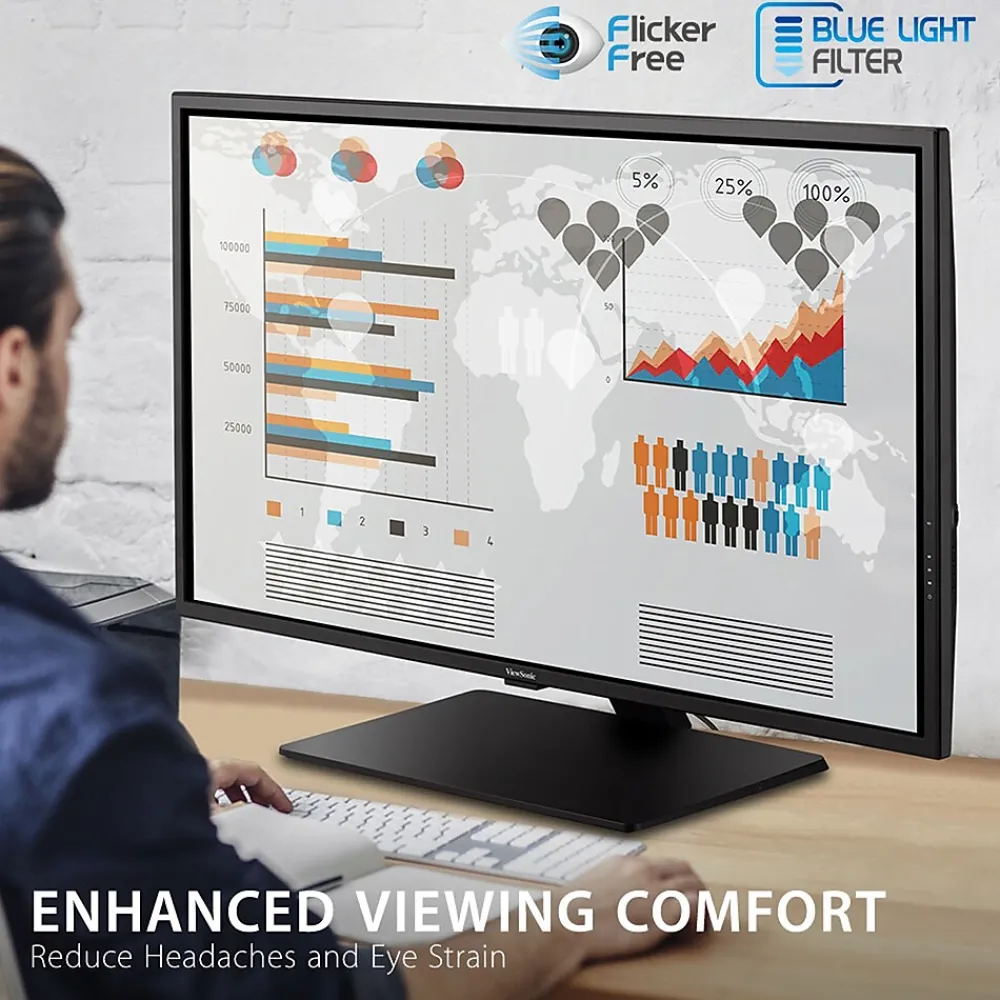 - ENHANCED VIEWING COMFORT: Flicker-Free technology and Blue Light Filter for reduced eye fatigue