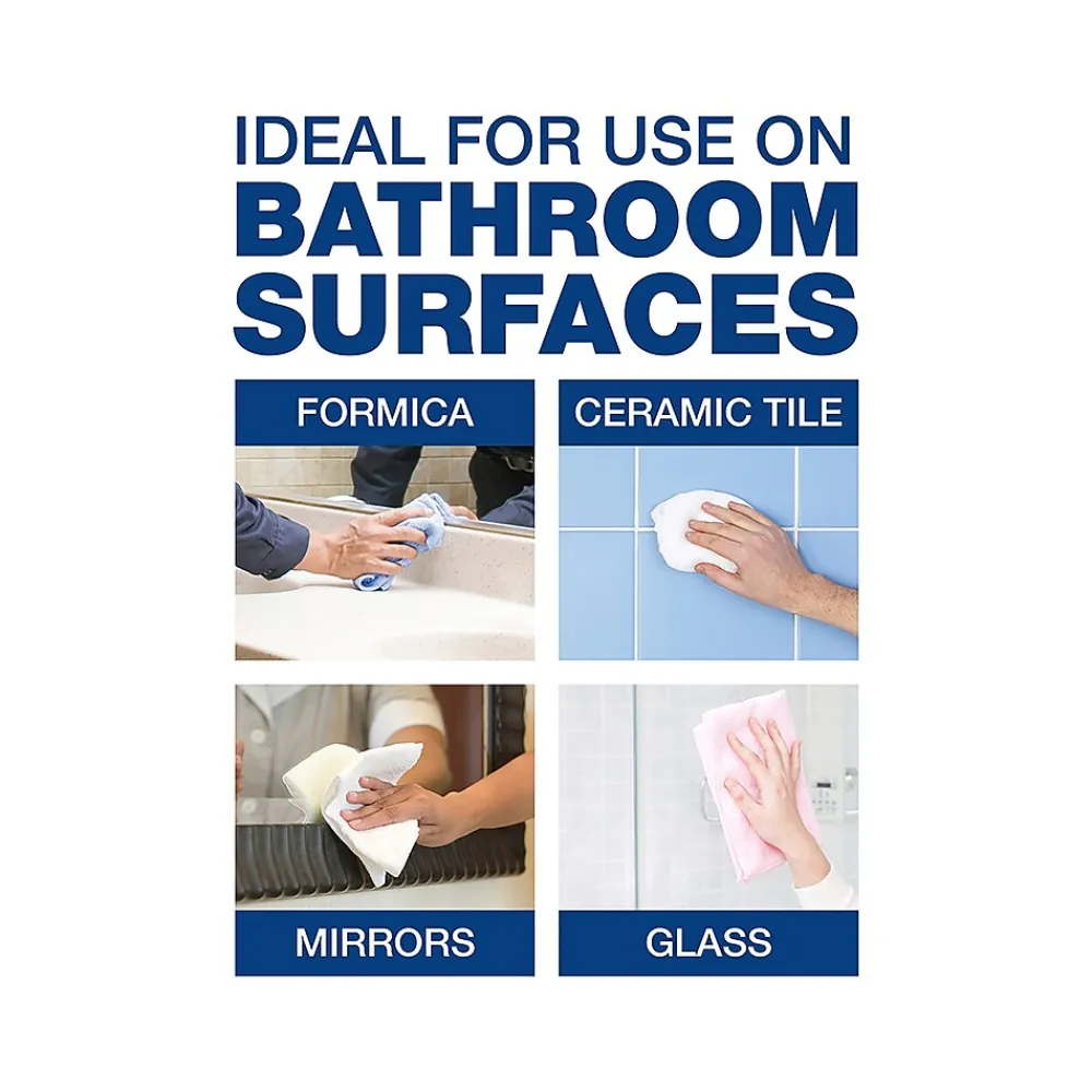 - Works on a variety of surfaces, including countertops, tables, stainless steel, and glass