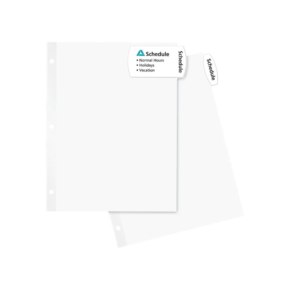 Organize classroom materials and other paper content using these label dividers. The three-hole punches allow these dividers to be inserted for use immediately, and the reinforced holes and tabs provide durability. This 5-tab set of Avery Big Tab label dividers comes with printable stickers for making legible labels, and the Easy Peel design makes removing individual stickers quick without affecting the surrounding stickers.