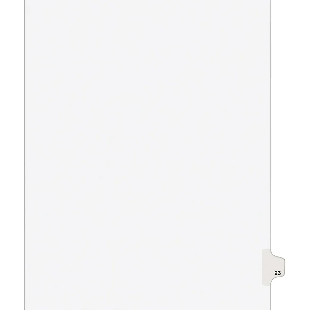 When you’re assembling your case for organized files, consider these Avery(R) Individual Legal Dividers. This set contains 25 dividers printed with the same tab. Use these dividers to organize your index briefs, legal exhibits, mortgage documentation files and more. The crisp and clean white paper stock dividers give your files a professional appearance, and durable Rip Proof(TM) reinforced tabs are preprinted on both sides using Helvetica bold type so you can locate your information easily. The unpunched binding edges mean these indexes can fit practically any binding system.