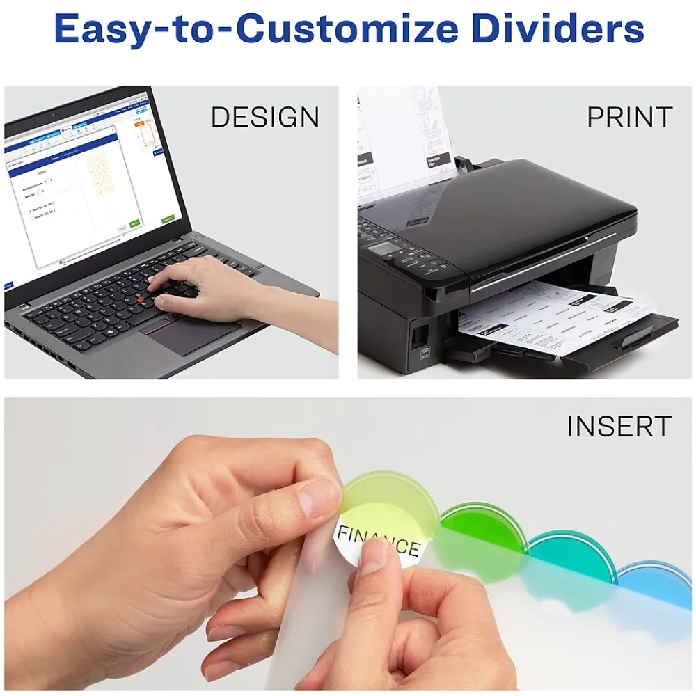 - Customize tabs for subject dividers easily using free fonts and templates on the Avery site; label inserts are compatible with laser and inkjet printers
