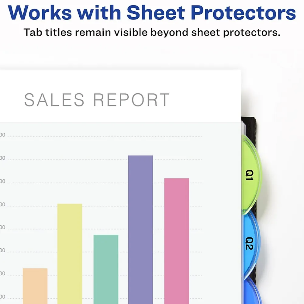 - Tab titles remain visible with tabs that extend beyond sheet protectors