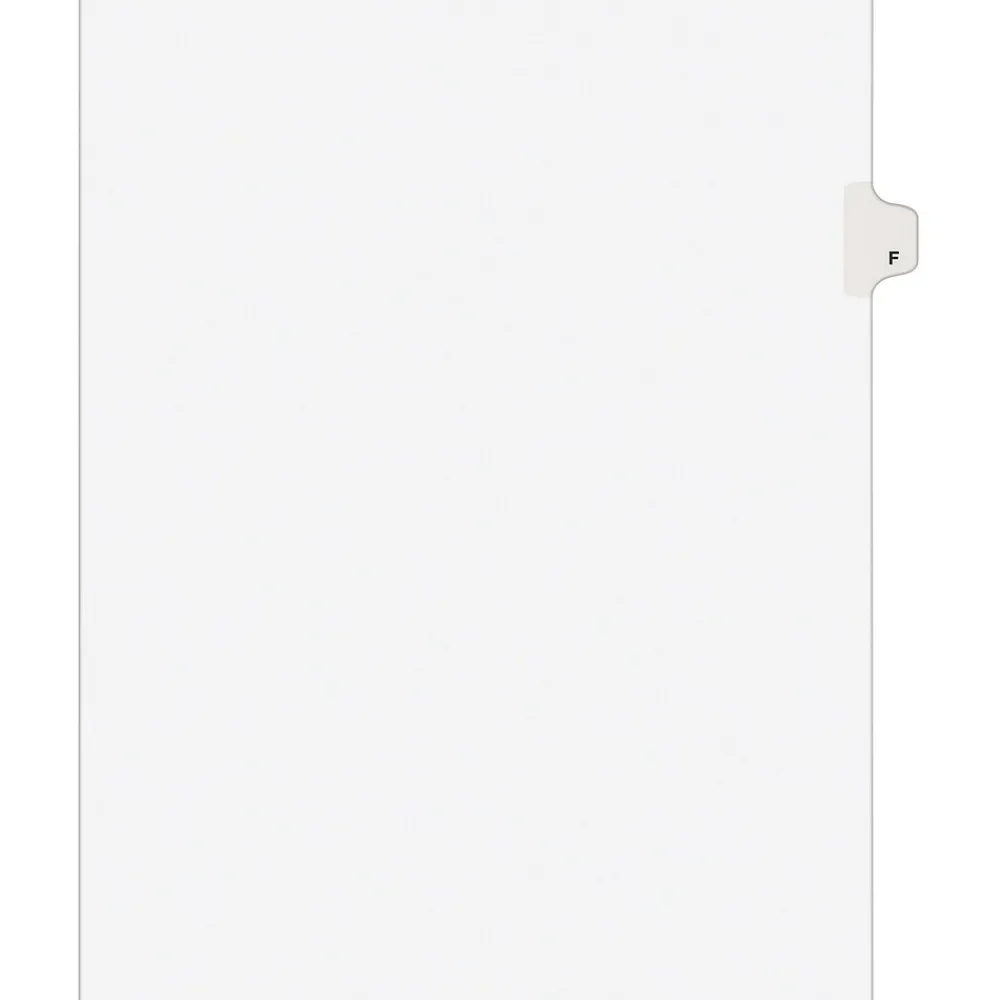 Avery® Tab F alphabetical individual set in white color is perfect choice to organize your index briefs, legal exhibits, mortgage documentation files and more.