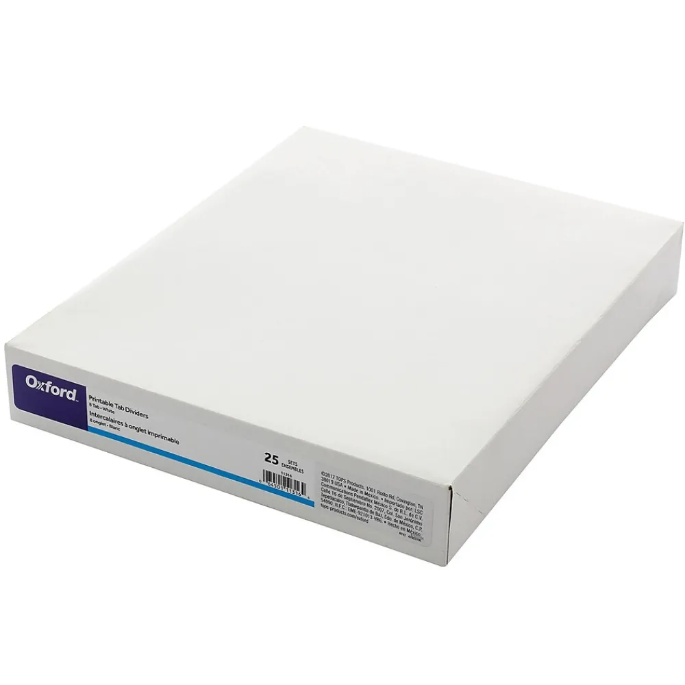 Dividers|Oxford Custom Label Dividers, Self-Stick Tab Labels, 8-Tab, Letter, White, 25 Sets