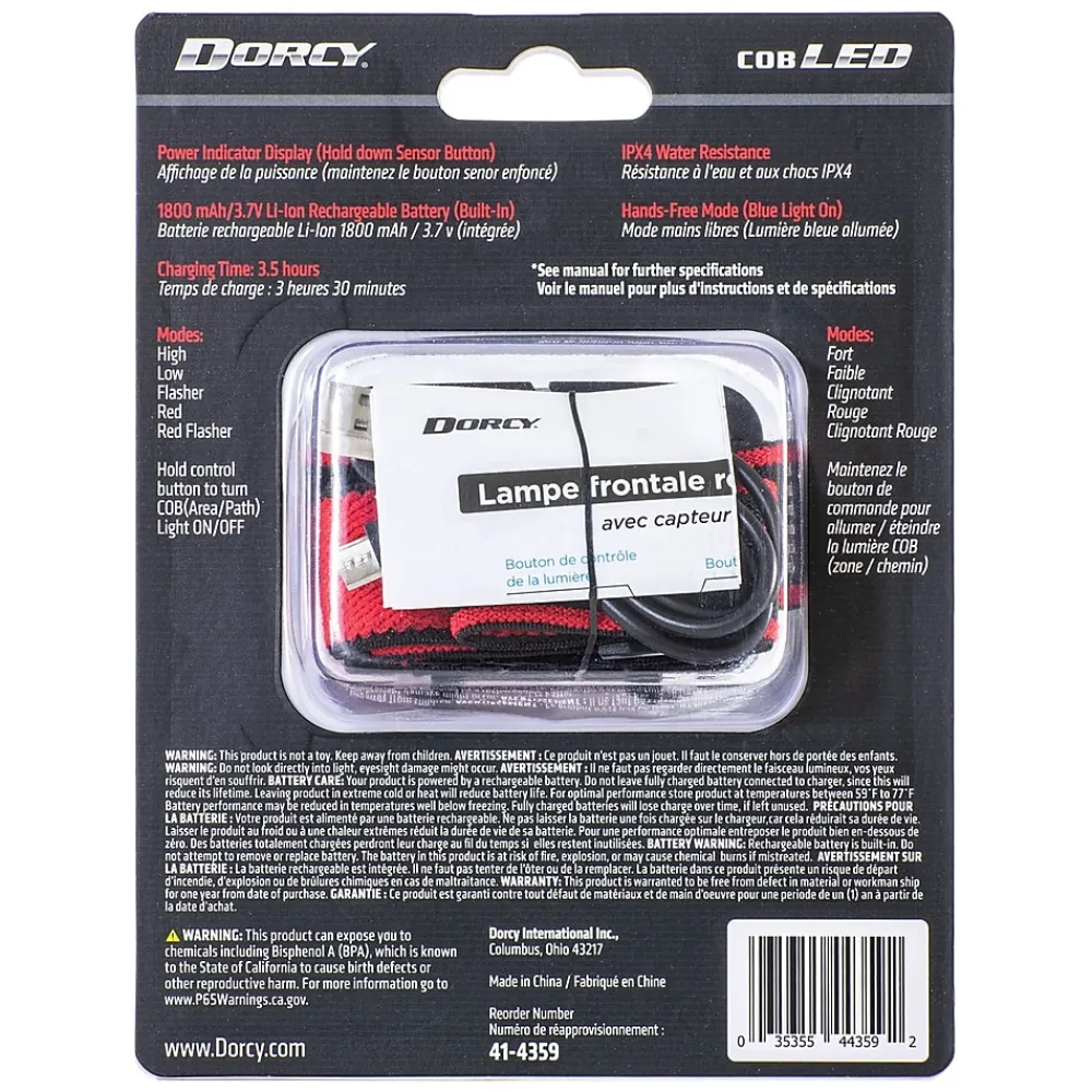 The Dorcy 330-Lumen USB Rechargeable Motion Sensor Headlamp can be used in regular on/off mode, or used in motion sensor mode with a simple wave of the hand. The motion sensor feature is ideal for when you have wet, oily, or gloved hands. This lightweight and compact headlamp features a washable adjustable head strap and a pivoting head for directional lighting.