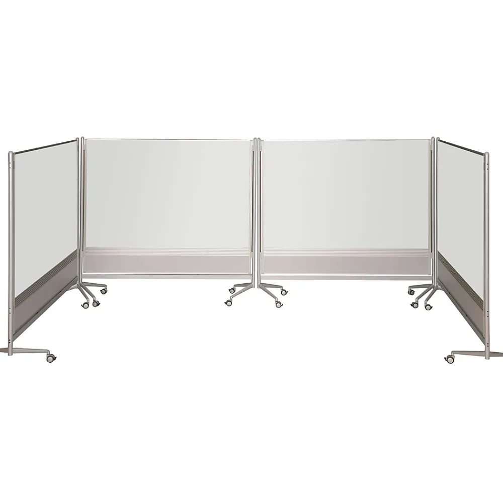 Best-RiteĀ® Mobile dry erase dividers measuring 6′ x 6′ with porcelain surface has unique leg design that allows panels to be joined with minimal gapping. Dividers has partitions that allows you to divide organize and customize a work or display area.