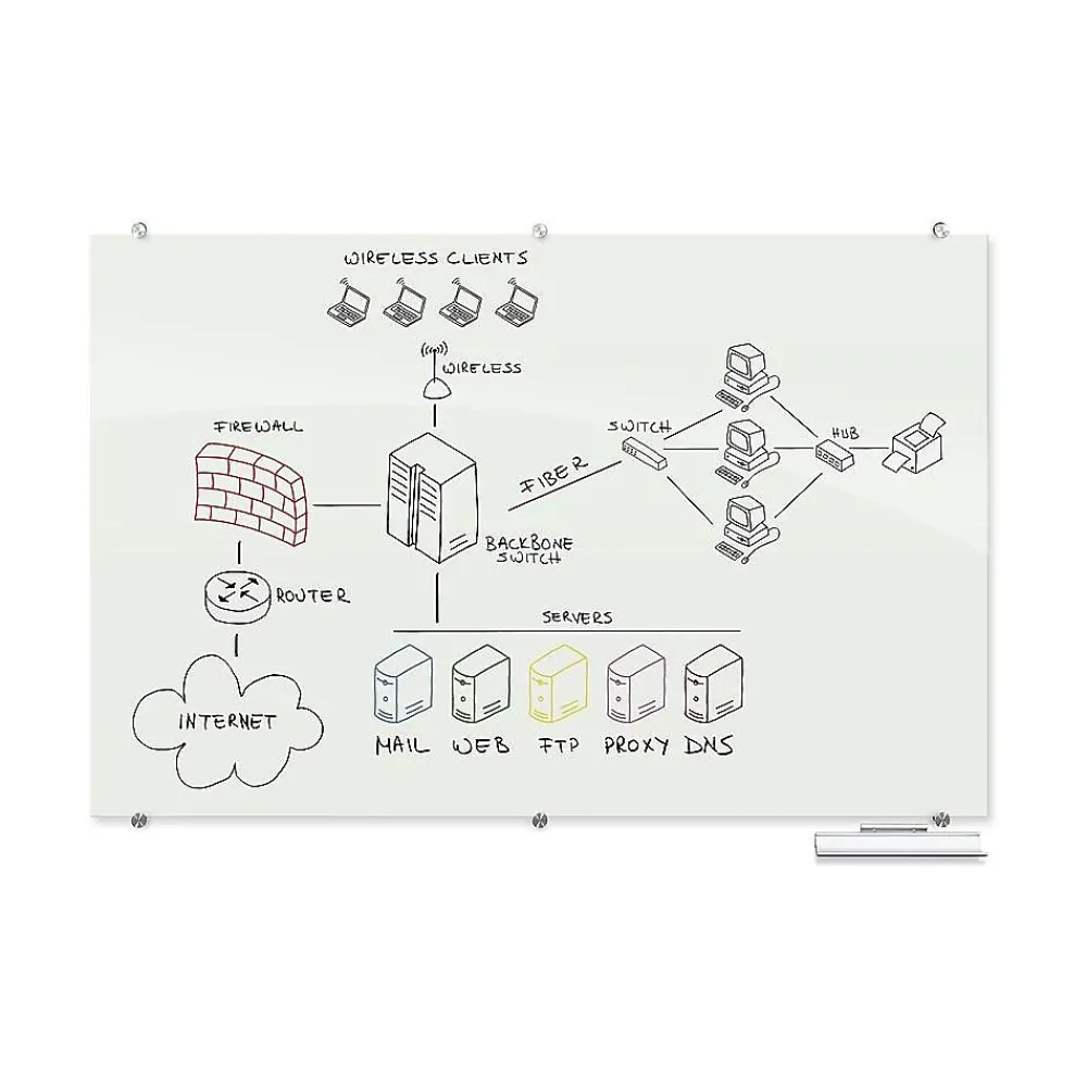 - Durable tempered glass accepts dry or wet-erase markers, grease pens, etc.