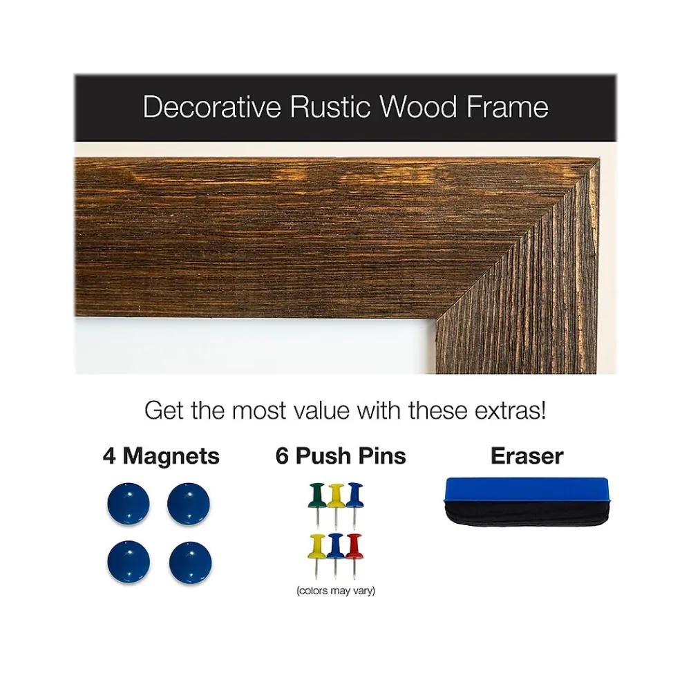 - Package includes: whiteboard, pushpins, magnetic eraser, and four magnets