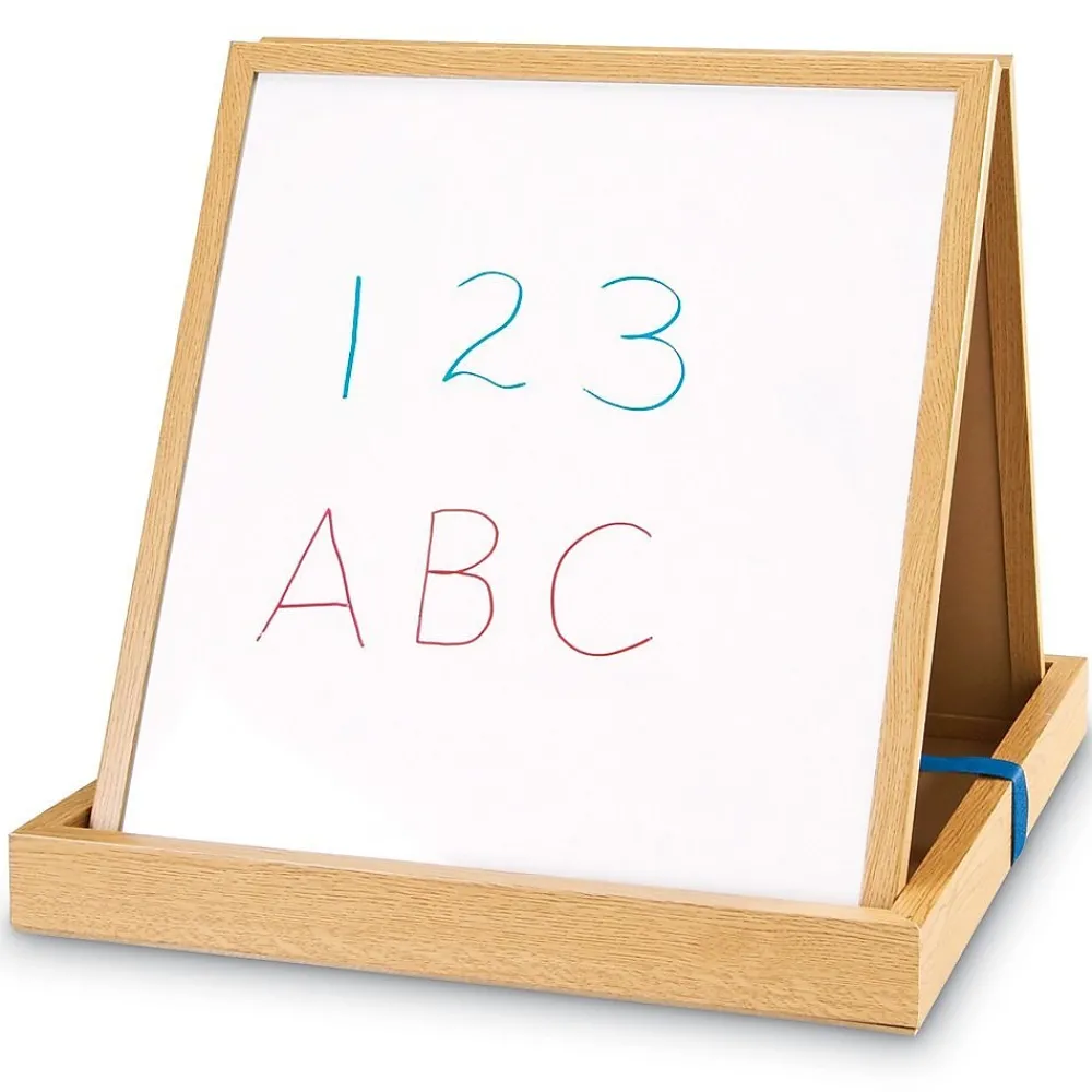 Help students maintain focus as they learn spelling and early math with this upright learning center. The double-sided easel features magnetic write & wipe board on one side, and felt board on the other. Folds flat for easy storage.