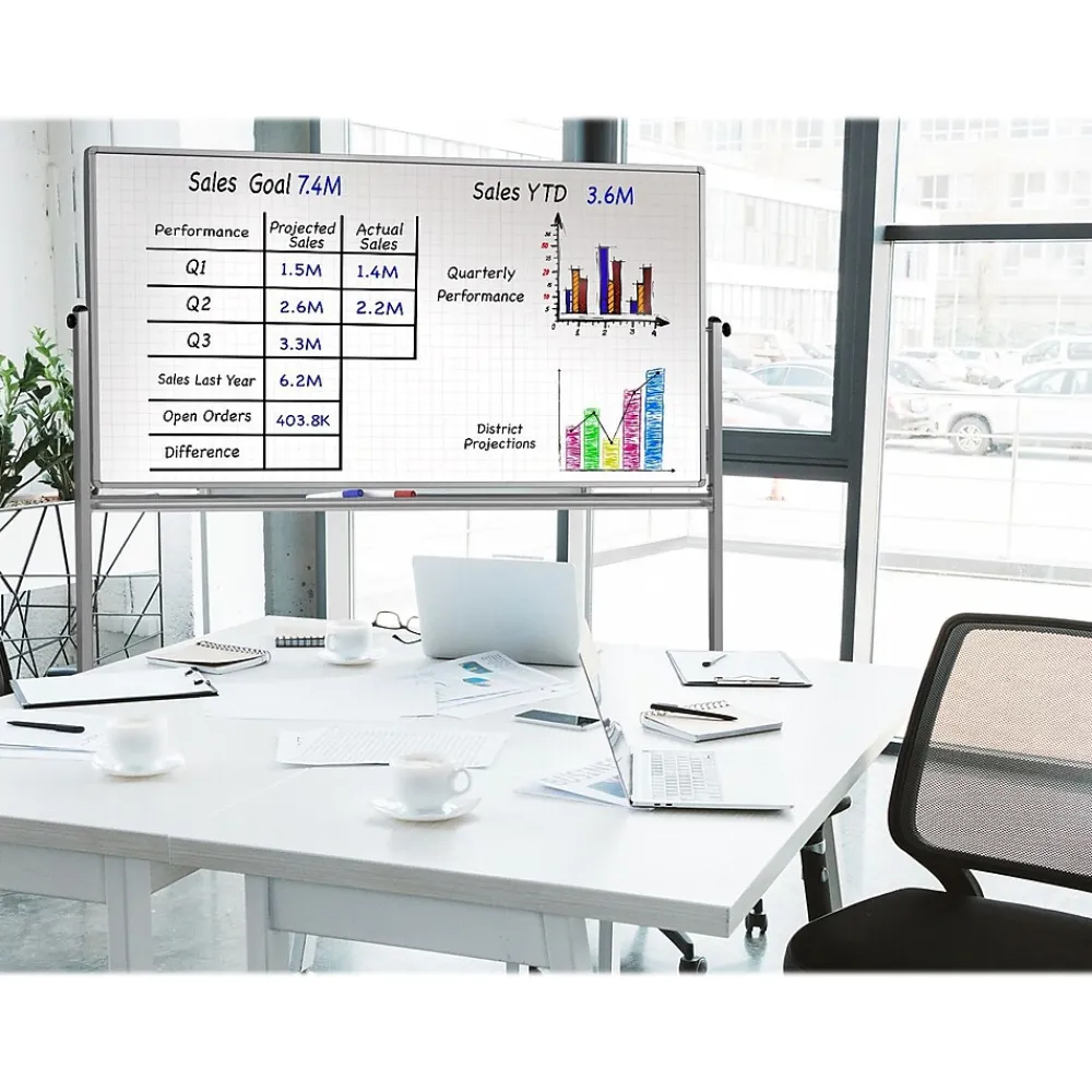 - Painted steel whiteboard surface resists ghosting and staining, while the magnetic surface allows for posting of documents and notes