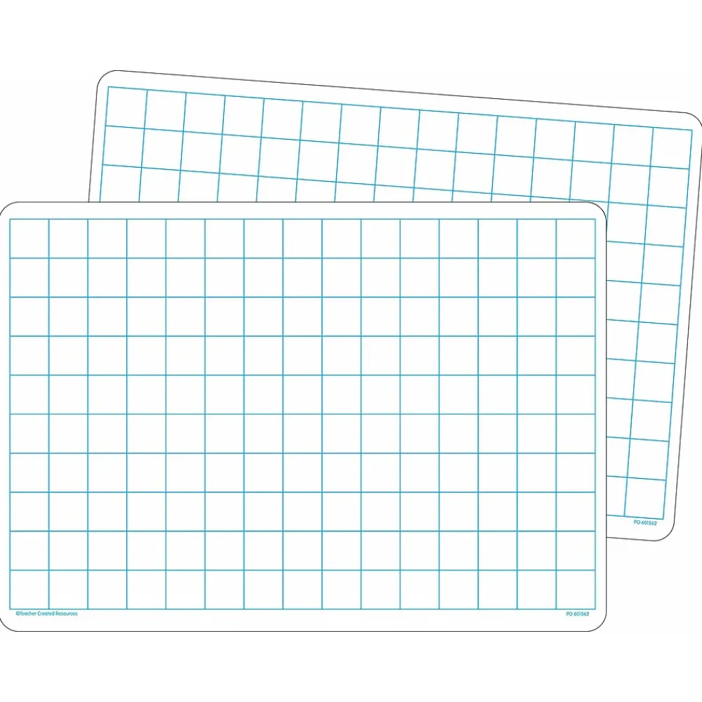 This double-sided dry erase board has a write-on/wipe off surface. One side is a grid-perfect for practicing graphing and data collection, the other side is blank. The grid squares are 1 centimeter each. Each sturdy board measures 9″ x 12″. Includes 10 boards.