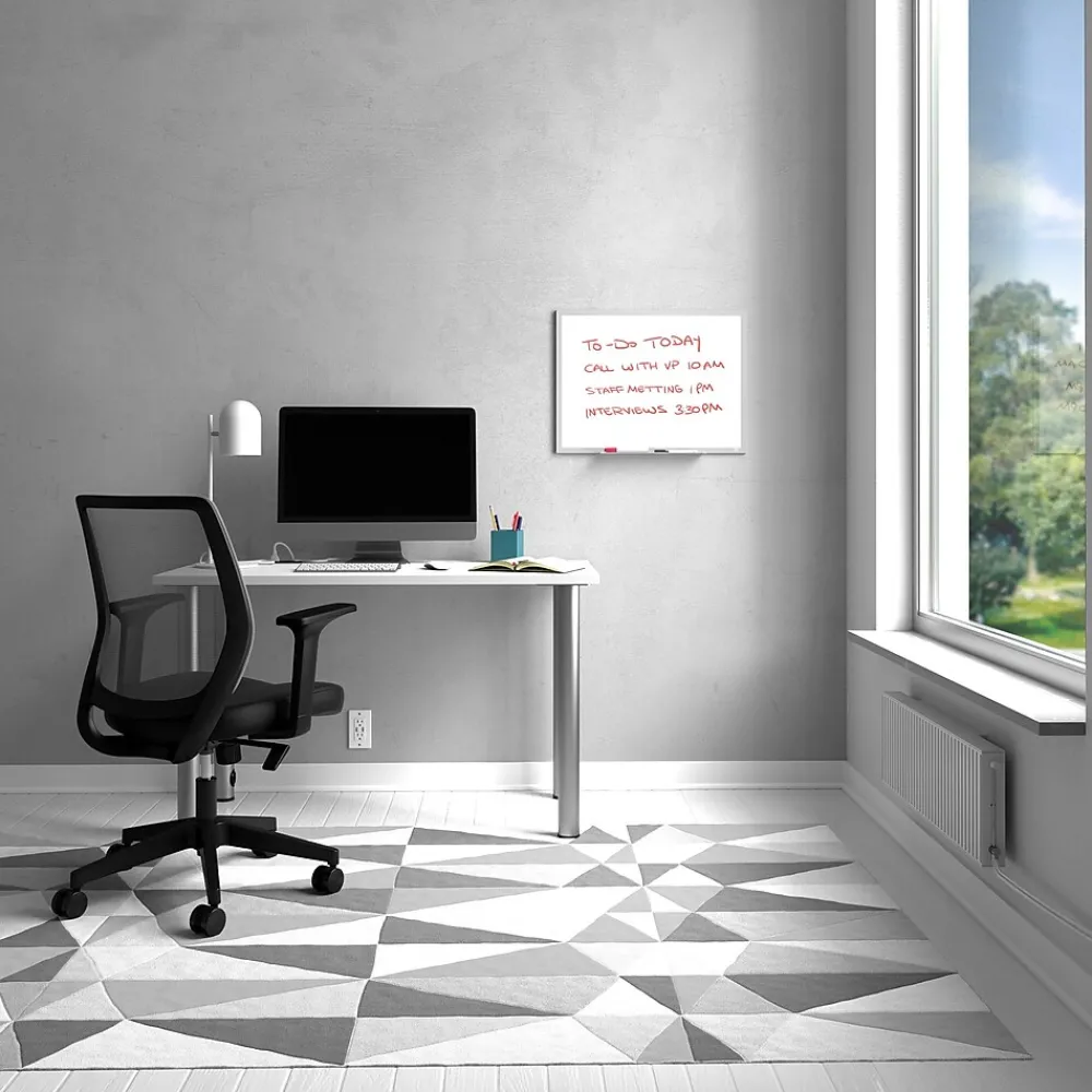This TRU RED™ whiteboard features a durable, non-magnetic melamine surface that is easy-to-erase and easy-to-clean, so you can write and erase with ease. The large surface area of the board is perfectly sized for use in the office or the home, with an added versatility that allows vertical or horizontal placement. With consistent cleaning after each use, your whiteboard board will stay ready for the next round of notes and brainstorming.