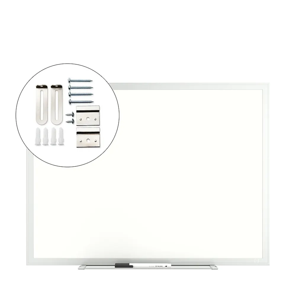- Includes whiteboard, mounting kit, accessory tray, and (1) TRU RED™ fine-tip black dry erase marker