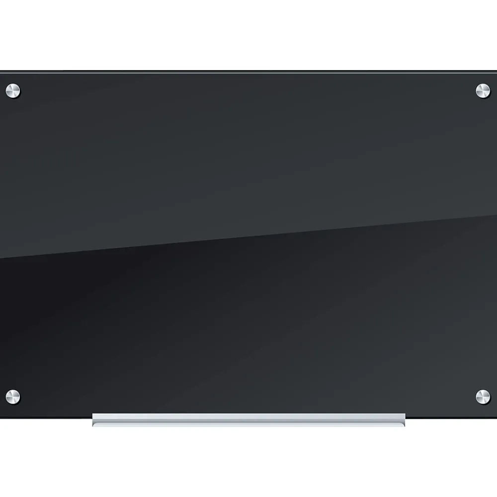 Black glass dry-erase-board is a perfect and functional solution for the frequent and heavy usage areas of your office, school classroom, home or any commercial space. Clean, contemporary and frameless product design lines will add a touch of subtle style to your wall. The modern frameless feature enables you to hang multiple glass boards adjacent to each other and expand the writing surface to fit your custom space needs.