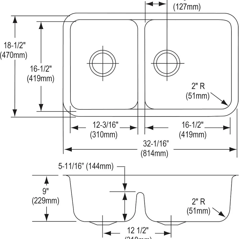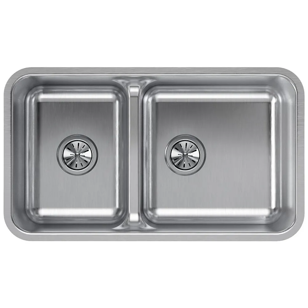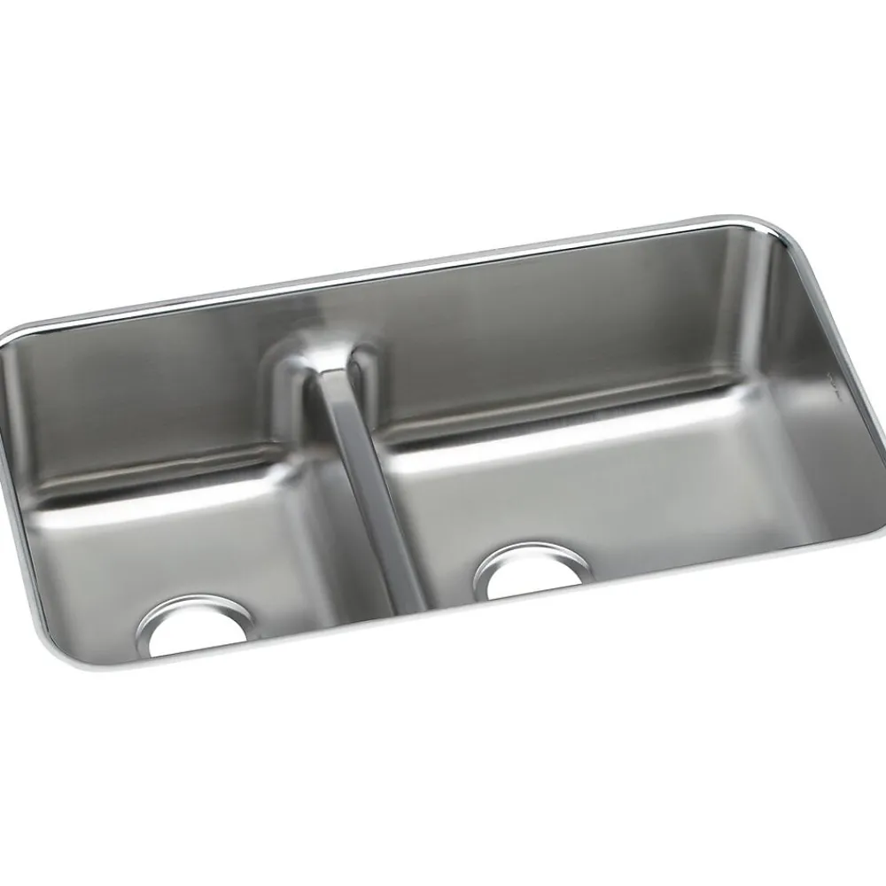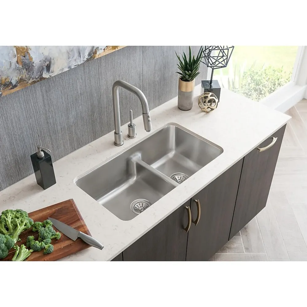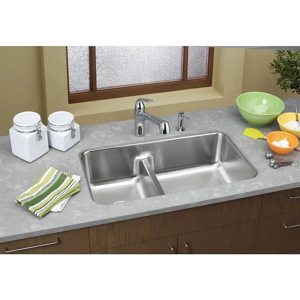 Elkay Lustertone Stainless Steel 32-1/16″ x 18-1/2″ x 9″, 40/60 Double Bowl Undermount Sink with Aqua Divide ELUHAQD32179
