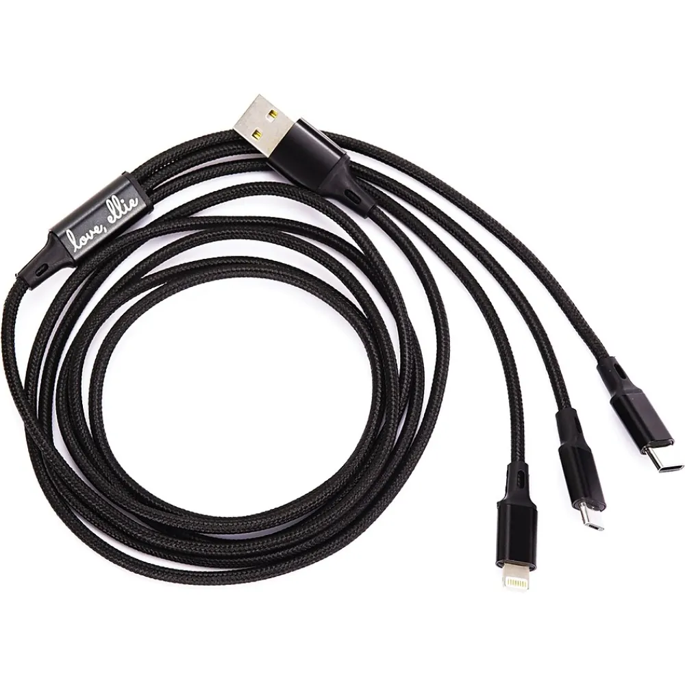 This Black Love, Ellie 6 Ft. Nylon 3-in-1 Charging Cable works with a variety of devices! Charge your smartphone, tablet, e-reader, power bank, and more, without having to swap cables. The generous 6 ft. length is ideal for desktop, in-bed, on the sofa, and in the car charging.