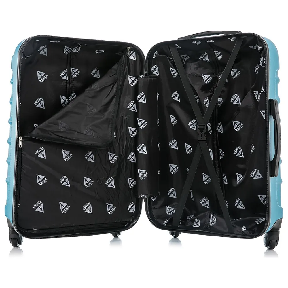 The InUSA Endurance 20″ hardside spinner luggage has a retractable trolley system, four spinner wheels, and ergonomic handles for comfortable transportation. The interior is fully lined and includes zippered compartments and elastic cross straps, while the luggage can stand upright.