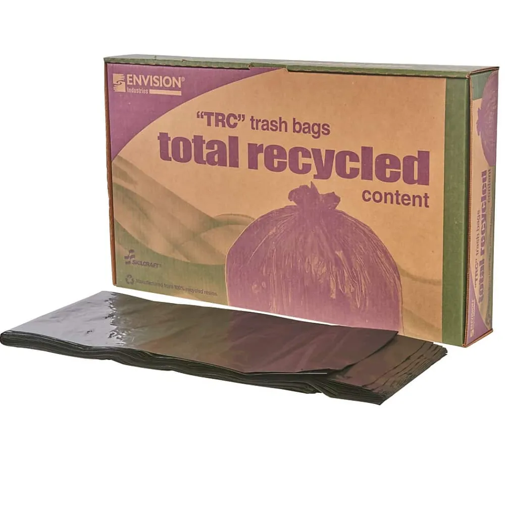 Environmental Solutions…From Stout. Established in 1933, Envision offers high quality products at competitive prices while providing the ability to improve the quality of life for the blind and visually impaired through employment, outreach, rehabilitation, education and research. TOTAL RECYCLED CONTENT “TRC” BAGS Total Recycled Content bags are manufactured from 100% recycled resins (minimum 30% postconsumer recycled material).“TRC” bags stand up to the heavy workloads while minimizing input of resins into our waste systems by recycling.
