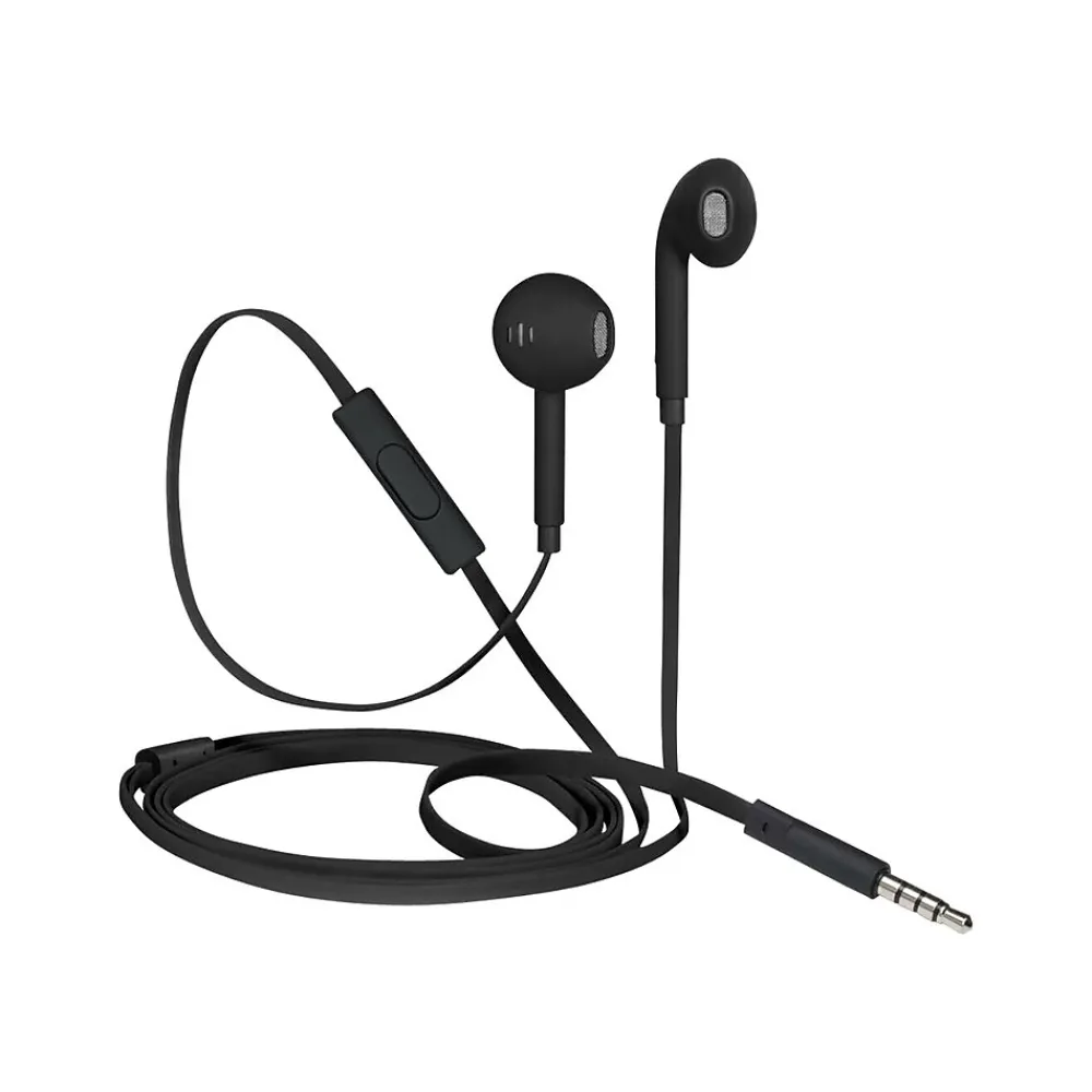 - Black earbuds deliver optimum sound quality