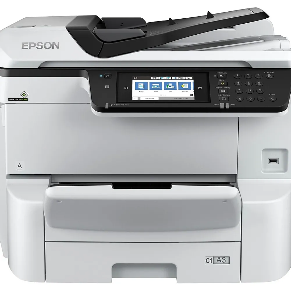 Workgroup A3 color multifunction printer that drives productivity. : Powered by PrecisionCore® printing technology, the WorkForce Pro WF-C8690 features the next generation of inkjet printing technology. Easy on the budget, this A3 multifunction printer saves you up to 35 percent on printing costs vs. color laser. Plus, it features auto duplexing for greater productivity. A true workhorse, the WF-C8690 offers print speeds of 24 ISO ppm (black/color), a fast first page out, and fast scan speeds. With a paper capacity up to 1,830 sheets, you’ll replace paper less often. Ideal for busy workgroups, the printer also includes PCL and PostScript® 3 support, plus compatibility with ISV and third-party software solutions. 4-in-1 with Wireless, Ethernet & PCL/PS: Print / Copy / Scan / Fax Ink: 4-color DURABrite® Pro pigment ink The printer is designed for use with Epson cartridges only, not third-party cartridges or ink.? ISO Print Speed: Black: 24 ISO ppm; Color: 24 ISO ppm