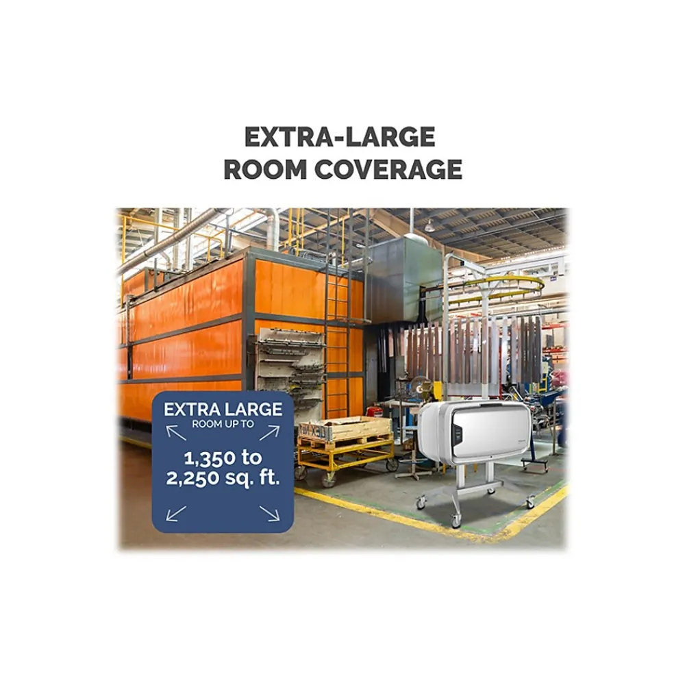 Bring effective coverage to extra-large spaces with the Fellowes AeraMax Pro AM4 FLEX mobile air purifier that is ready to be moved wherever you need it next. The filter combines ease of mobility and powerful purification for unmatched performance in cafeterias, gyms, corporate offices, extra-large conference rooms, shop floors, and more.
