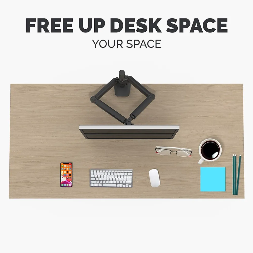 - GAS SPRING TECHNOLOGY: Adjustable arms with gas spring technology offer 22.25″ reach for increased workspace flexibility and ergonomic comfort.