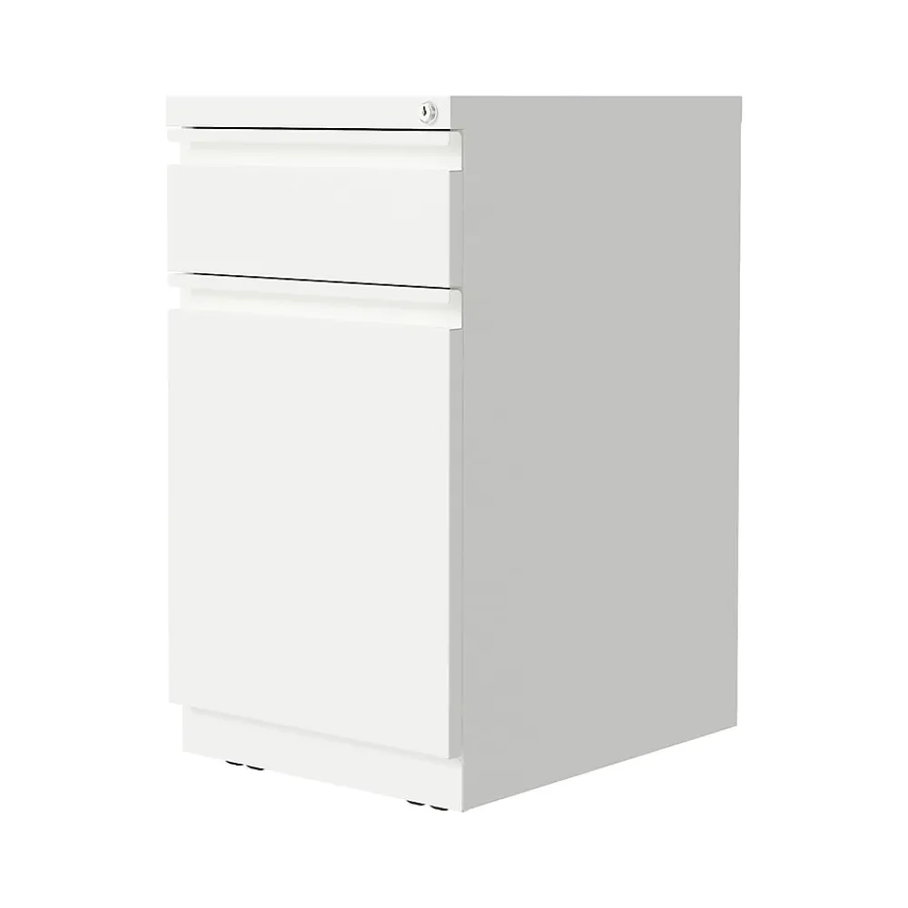 20-inch deep Mobile Pedestal Files with a 2-drawer box-backpack drawer configuration are designed to support the demand of today’s office. The backpack drawer is perfect for laptop bags and attachés. Durable, fully assembled steel construction with non-porous surface is easy to clean. These commercial grade mobile pedestals come standard with factory installed hidden casters, full extension drawers, counterweights, and a core-removable lock for security. The backpack drawer can also accommodate letter-size hanging files.The ball-bearing suspension ensures a smooth and quiet drawer performance. Extended fronts with full-width drawer pulls provide a sleek and contemporary design. Available in multiple colors to enrich your workspace. 27.75″ height allows these units to roll under most work surfaces. Limited Lifetime Warranty. Unit meets or exceeds ANSI-BIFMA industry standards. Greenguard Gold Certified.