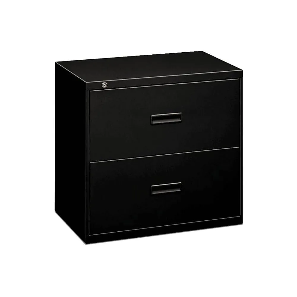 This two-drawer, 36″W model has a tamper-resistant enclosed base. Cabinet accepts letter or legal hanging file folders. Molded polymer handle is standard. Finish color is Black.