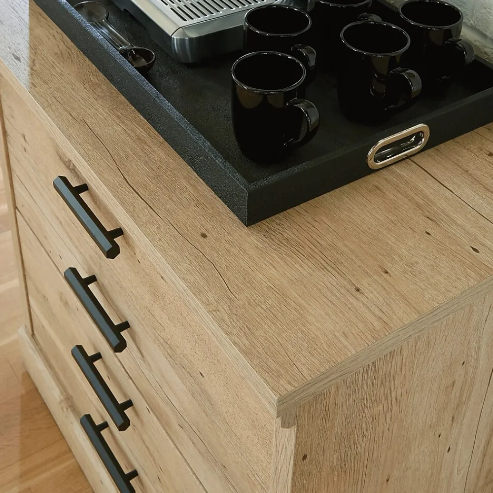 Your papers deserve more than being shoved in a drawer only to be forgotten about or disappear when you need them most. The Mason Peak lateral file cabinet will make sure you never go scrambling for that missing document ever again. With drawers that fully extend and hold letter, legal or European size hanging files, all your important documents are readily available at your fingertips. Your files will be secure with the drawer key locks on this wood lateral file cabinet. Safety is on our minds, and the interlocking safety mechanism of this 2 drawer lateral file cabinet allows only one drawer to open at a time. Your time is precious. That’s why this wood lateral file cabinet comes fully assembled with minimal hardware attachment required. Commercial filing cabinets are a centerpiece in the best offices, and this file cabinet is finished on all sides for a polished look from every angle. Finished in a light Prime Oak, commercial office storage has never looked so good.