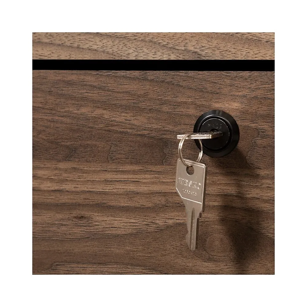 - Made of laminated particleboard in a natural walnut finish with black hardware