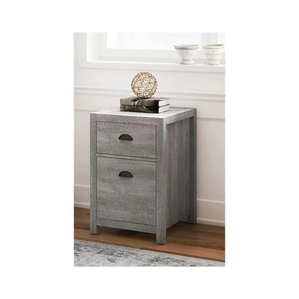 This Whalen Fallbrook two-drawer vertical file cabinet holds letter- or legal-size documents. It features a durable laminate construction and full-extension, ball bearing metal drawer glides.