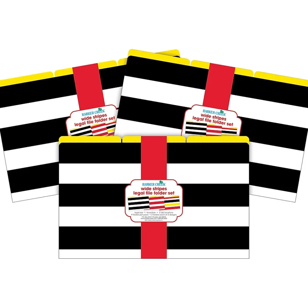Barker Creek’s Wide Stripes legal-sized fashion file folders are raising the style bar for those of us who use legal folders at work, school, and home. Each set includes 27 beautifully designed legal-sized file folders – six folders each of three on-trend designs. The folders are 1/3 cut and printed on durable 12 pt. stock. Fully reversible, each folder has a colorful design on one side and a vibrant, solid color on the reverse side – perfect for color-coding your files, making file folder games and lap books. The possibilities are limited only by your imagination! Coordinating products available: Search Barker Creek Buffalo Plaid & Wide Stripes.