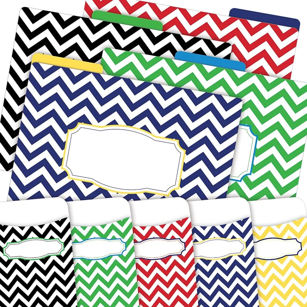 - File folders are printed on 14pt stock, letter-sized, reversible, and 1/3 cut.