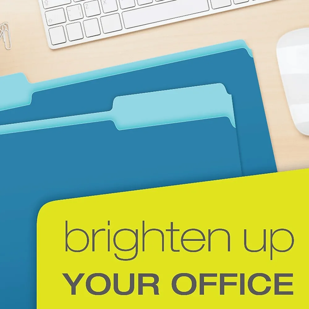 Pendaflex 1/3 Cut file folder in blue features a bright exterior color and a lighter shade interior to reduce misfiling. Folder has single-ply tabs in assorted 1/3 cut positions.