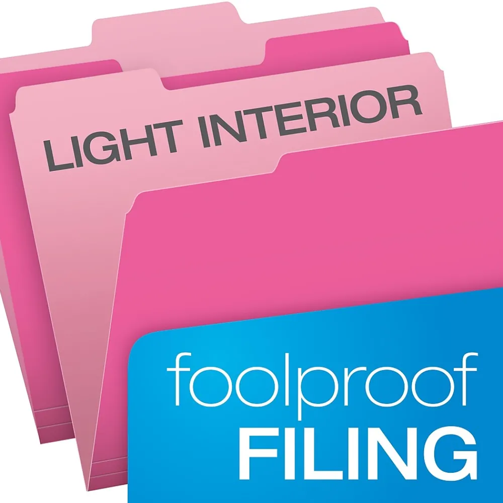 Hard-working interior file folders fit inside hanging folders without obscuring tabs. Perfect for subdividing records within a hanging folder. Color-matched to hanging folders, creating a well organized and coordinated way to keep track of project records. Two-tone design helps prevent misfiles and is reversible to double your color options. 11 pt. stock. Acid-free.